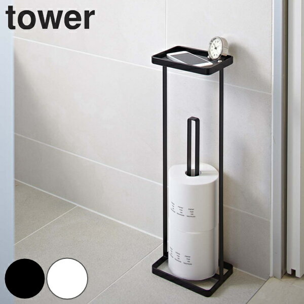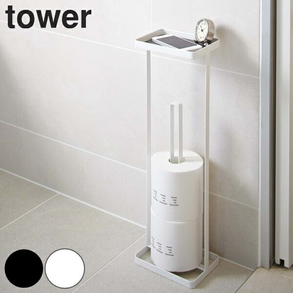トレイ付きトイレットペーパースタンド タワー tower 山崎実業 トイレ収納 スリム ( 送料無料 トイレットペーパー ストッカー 収納棚 収納ラック トイレットペーパーホルダー コーナー トイレラック トレイ )【3980円以上送料無料】